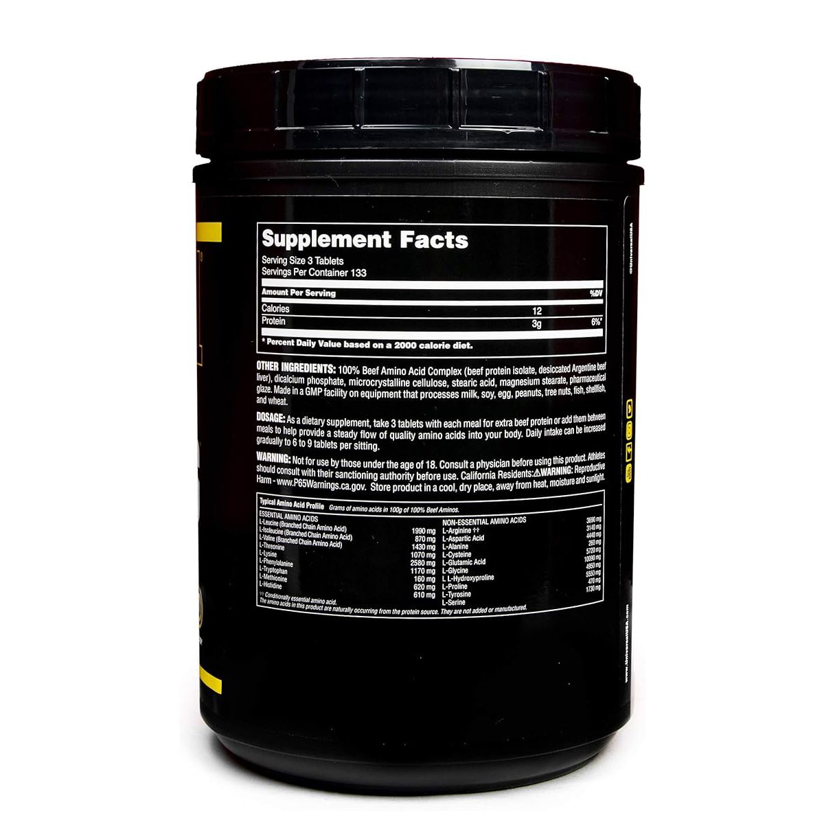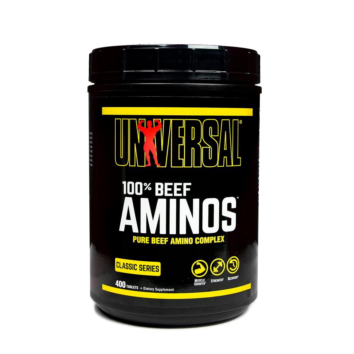 آمینو بیف یونیورسال ۴۰۰ عددی، یک محصول کمپلکس آمینو بیف خالص منحصر به فرد است که دارای طیف گسترده ای از اسیدهای آمینه به شکل آمینو اسیدهای شاخه دار (BCAA) و اسیدهای آمینه ضروری (EAAs) می باشد. اسیدهای آمینه موجود در آمینوهای گوشت گاو یونیورسال 100% از پروتئین ایزوله گوشت گاو و جگر گوشت گاو آرژانتینی خشک شده خالص گرفته شده است.